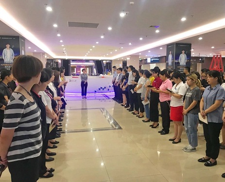 首先,于總主持了業(yè)務(wù)部的大晨會(huì),對(duì)業(yè)務(wù)部全體員工及在場(chǎng)商戶定下了新的目標(biāo):“帶出一流的隊(duì)伍,創(chuàng)出一流的業(yè)績(jī),展現(xiàn)一流的風(fēng)貌!”大家共事與武昌店這個(gè)高端賣(mài)場(chǎng)中,小到服裝禮儀、陳列迎賓,大到店面管理、日常銷(xiāo)售,都要對(duì)自己高標(biāo)準(zhǔn),嚴(yán)要求,力爭(zhēng)與武昌店的高端賣(mài)場(chǎng)形象相匹配。